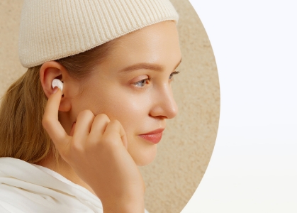 Słuchaj muzyki, nie tracąc kontaktu z otoczeniem. Tryb Transparency wzmacnia dźwięki z zewnątrz, dzięki czemu nie ominie Cię nic ważnego.